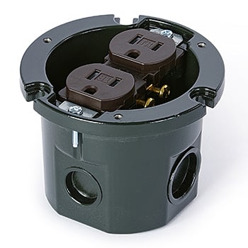 Round, deep, die-cast aluminum, fully-adjustable, floor box for commercial