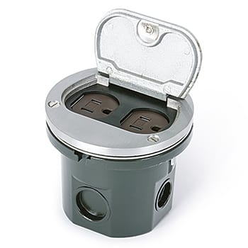 This versatile round floor box can also be installed in tile or carpet flooring with the addition of an optional floor flange (see product links below for all compatible flange and cover options). Ideal for use in living rooms, great rooms or other residential spaces, the 812-DA series combines functionality, safety, and a sleek finish in three different color options.