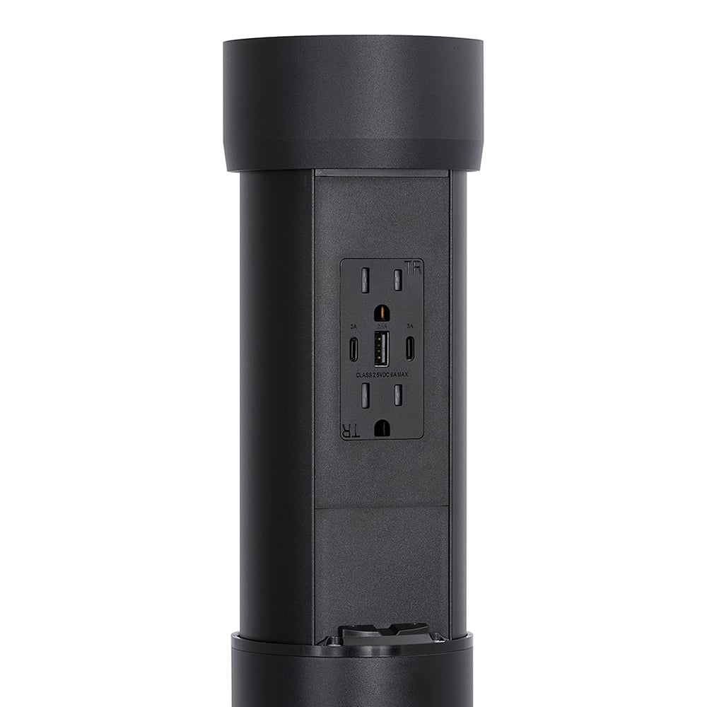The Point Pod Connect PPCV815B is a premium motorized pop-up outlet for kitchen countertops, designed to provide power and USB charging while maintaining a seamless, modern aesthetic. The body, cup and Decora/USB receptacle are black in color. What makes this pop-up outlet stand out is its ability to use a custom piece of your countertop—stone, wood, or other material—as the top of the unit, resulting in a truly flush-mounted outlet that blends perfectly with your surface. This creates a sleek, hidden solution for adding power and USB ports to kitchen islands, countertops, or any work surface without compromising the visual appeal of your space. The Point Pod Connect is a favorite among homeowners, designers, and architects looking for a functional and stylish in-counter power outlet that also meets safety and building code requirements.