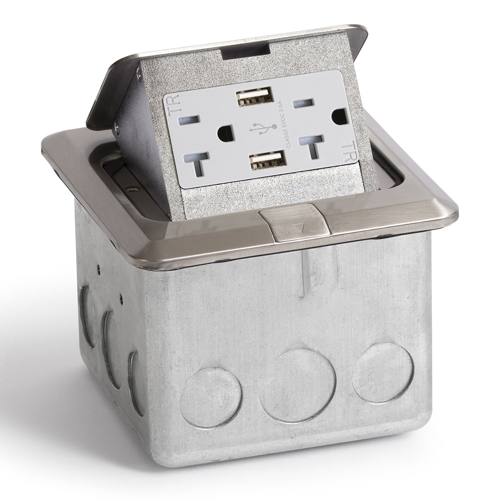 Square Pop-Up Floor Box (Decora/USB 20A) – Stainless Metal Cover
