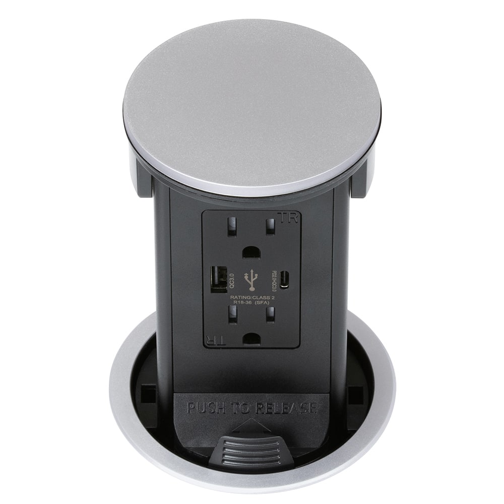 This pop-up power station includes a 15 AMP tamper-resistant (TR) receptacle also features advanced USB charging ports, including a USB-A port that supports Quick Charge 3.0 and delivers up to 27 watts, and a USB-C port that supports both QC 3.0 and PD 2.0 standards for up to 30 watts of fast charging power. The USB-C port is powerful enough to charge smartphones, tablets, and even laptops, making this outlet a complete power and charging solution for your kitchen or workspace. When both USB ports are in use, the combined output caps at 30 watts, ensuring safe and efficient power distribution.
