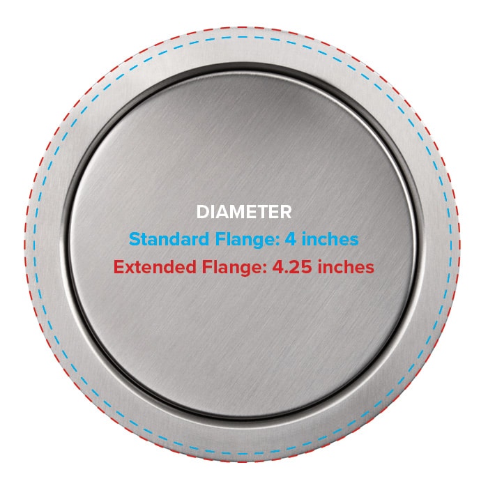 Extended flange to fit 4″ hole size for the PUR2 stainless metal tops or stainless tempered glass tops.