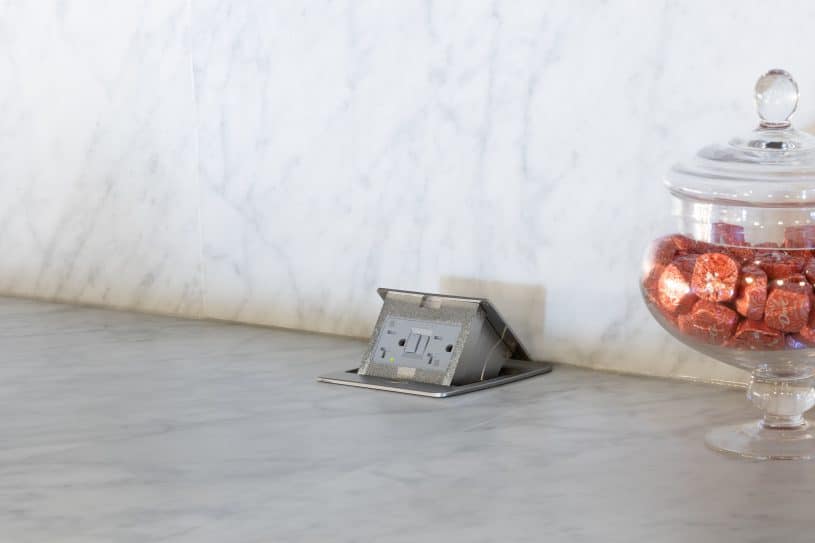 The Smarter Kitchen Power Solution: Lew Electric’s Motorized Flush Stone Cover Pop-Up Makes Life Easier