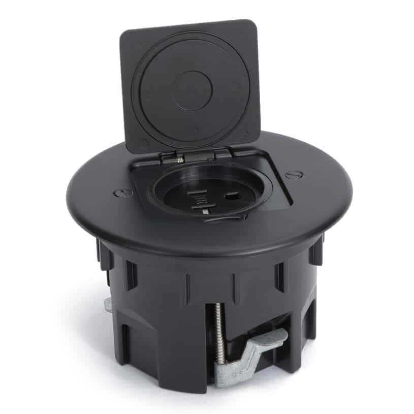 Round Single Receptacle Drop In Floor Box – Black Cover