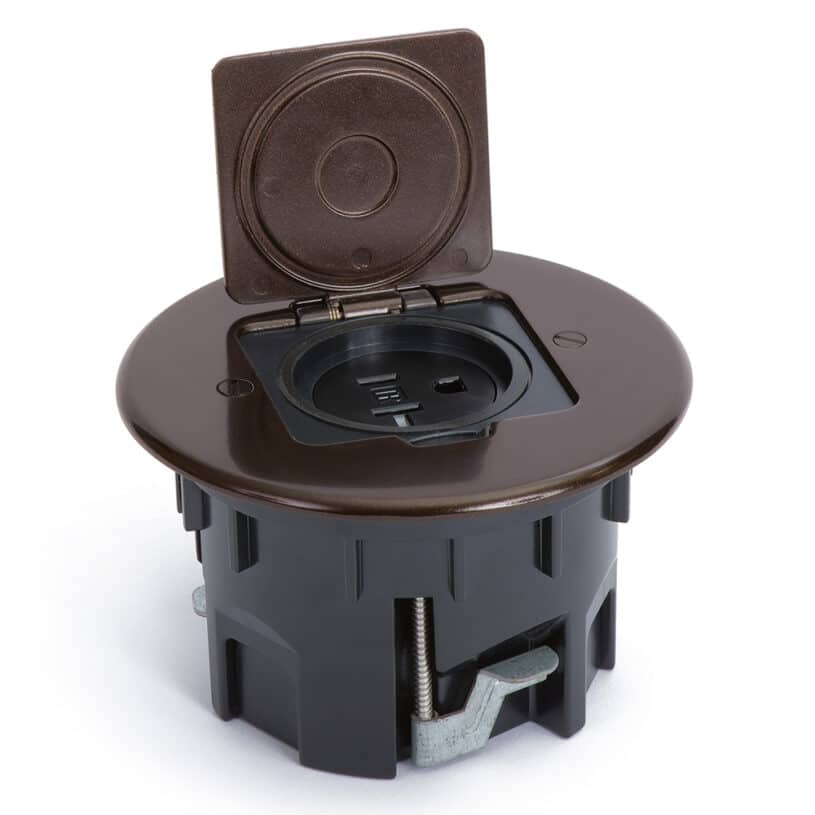 Round Single Receptacle Drop In Floor Box – Dark Bronze Cover