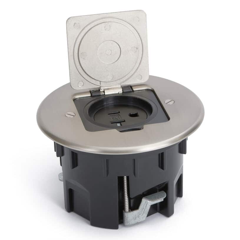 Round Single Receptacle Drop In Floor Box – Nickel Silver Cover