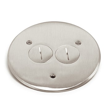 5 3⁄4″ nickel flanged floor box cover with two 1 1⁄2